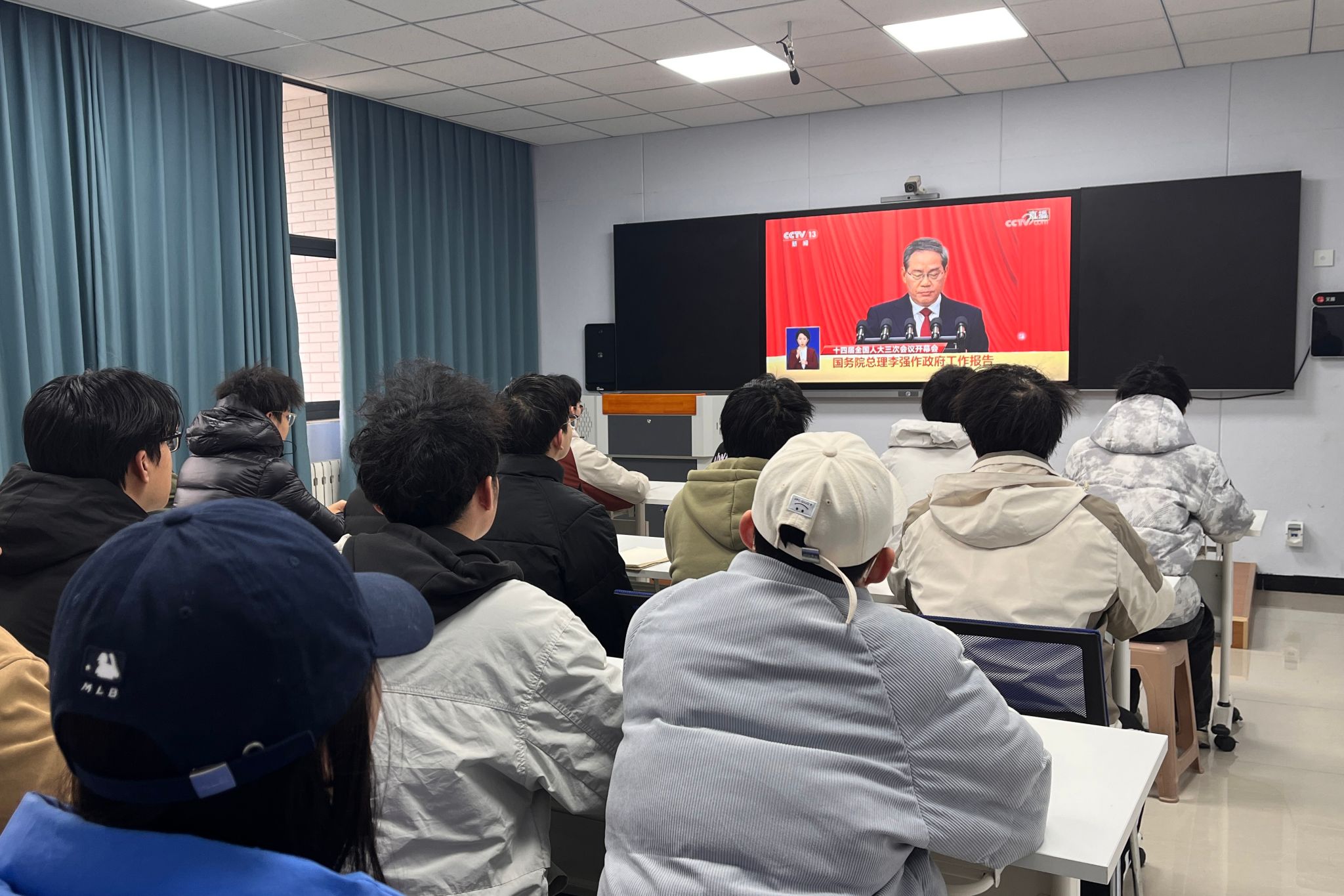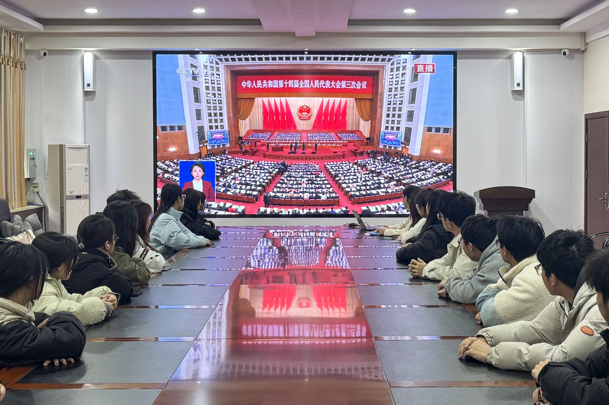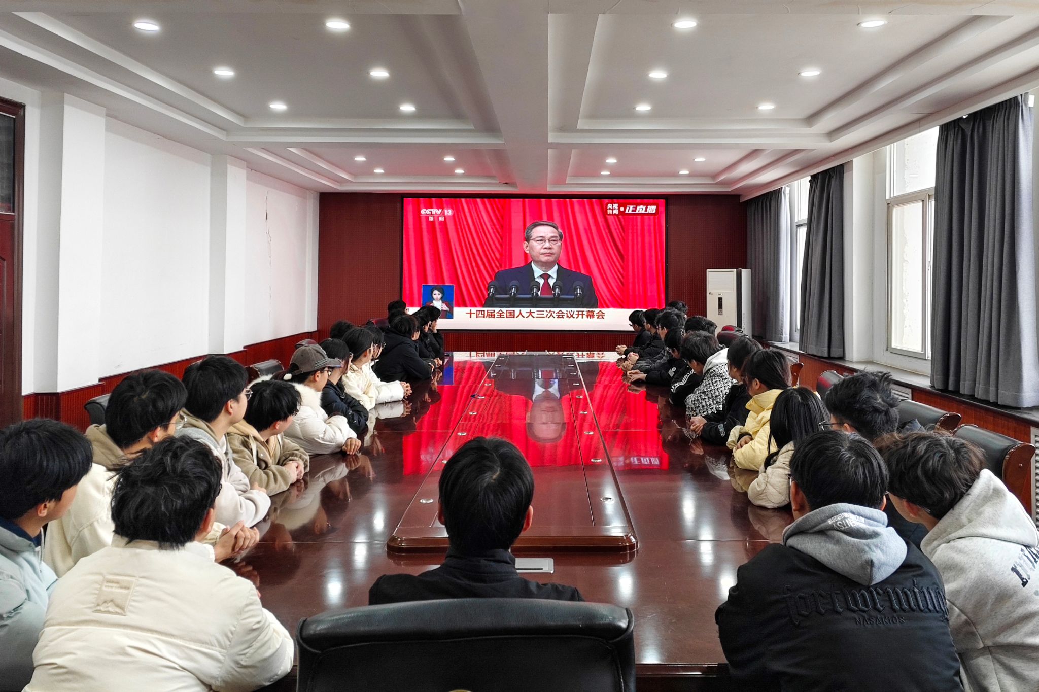 校新闻中心讯 春苗逢雨,万物萌新,一年一度的全国两会如约而至。3月5日上午9时,第十四届全国人民代表大会第三次会议在北京人民大会堂隆重开幕。我校师生通过电视、网络等多种途径收看大会盛况,第一时间学习领会大会精神。