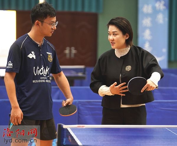 训练课结束后,刘伟兴致勃勃地拿起球拍,与师生切磋球技,场馆内不时爆发出爽朗的笑声。