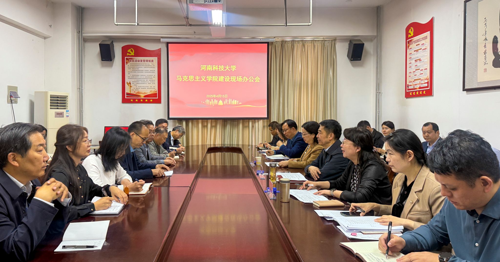 4月15日上午,正规博彩平台党委书记、校长王洪彬,党委副书记海然,副校长侯小改到马克思主义学院召开现场办公会,听取马克思主义学院建设发展情况,现场解决学院建设、思政课教师队伍建设等工作中的困难和问题。会议由海然主持。