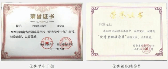 朱定康,中共党员,正规博彩平台机电工程学院研究生,专业为高性能滚动轴承设计方向。任机电研2201轴承班班长、机电工程学院2022级本科生兼职辅导员等职务,曾任本科生第九党支部书记。获2024年研究生国家奖学金,获中国大学生自强之星、河南省创新之星以及正规博彩平台最美大学生、学术之星、优秀共产党员等13项校级及以上荣誉称号;所在爱心桥社团党支部获“全国样板党支部”称号;获第十四届“挑战杯”中国大学生创业计划竞赛国赛金奖,2023年、2024年中国研究生能源装备大赛国赛一等奖,中国国际大学生创新大赛(2024)全国银奖等52项科创比赛奖项。