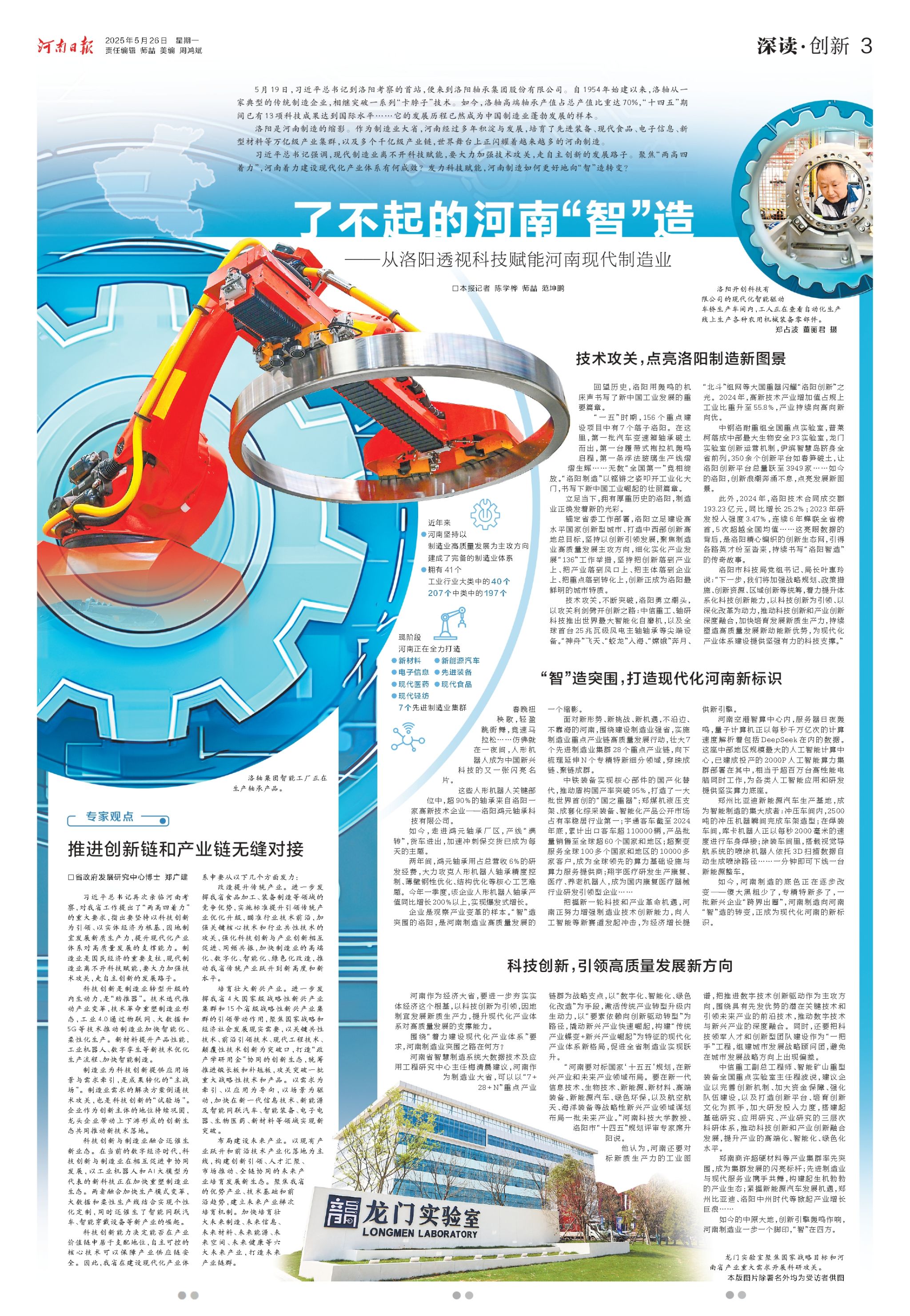 如今的中原大地,创新引擎轰鸣作响,河南制造业一步一个脚印,“智”在四方。