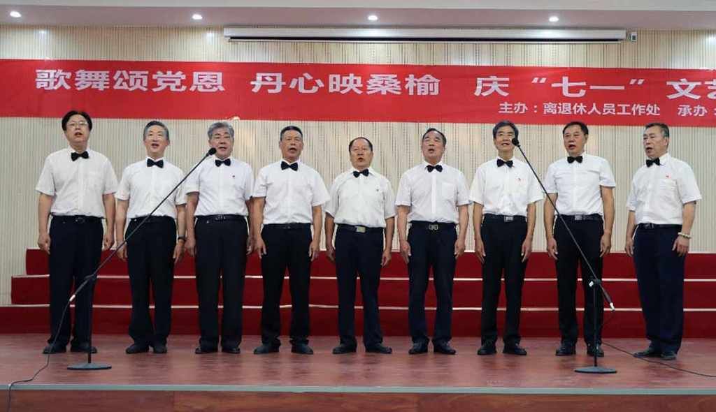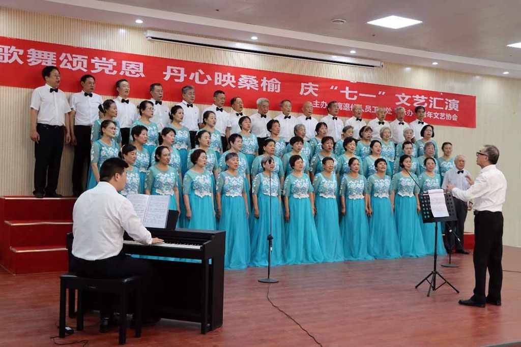 大合唱《爱永在》《走向复兴》将活动气氛推向高潮。老同志们歌声嘹亮,用激昂的旋律表达“听党话、跟党走、颂党恩”的坚定信仰。