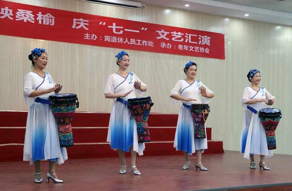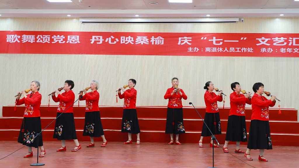手鼓《丝绸之路》节奏明快,带领观众感受古丝绸之路的辉煌;模特秀《最美中国》里,离退休同志们自信优雅,展现出东方韵味;葫芦丝合奏《今天是你的生日》,旋律悠扬,为党送上美好祝福。