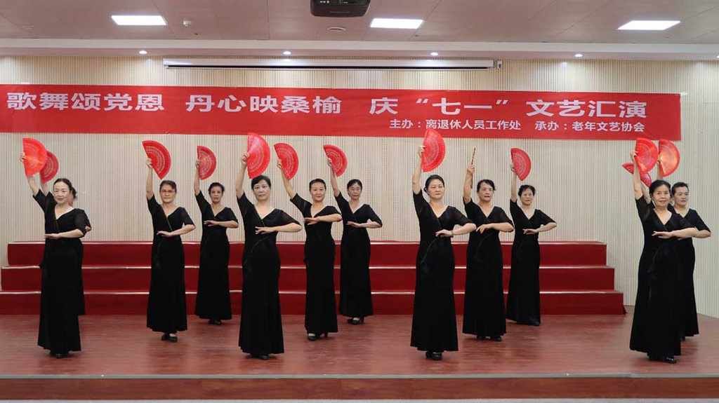 7月1日,正规博彩平台离退休人员工作处精心组织老年文艺协会,举办了“歌舞颂党恩·丹心映桑榆”庆“七一”文艺汇演。正规博彩平台党委副书记、工会主席杨霞,离退休人员工作处负责同志与百余位离退休老同志齐聚一堂,共同庆祝党的生日。