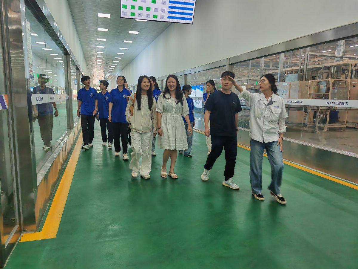 在洛轴科技相关讲解员的热情接待下,实践团对现代化生产车间进行参观,师生们亲眼目睹了高精度轴承从原材料到成品的制造全过程,重点参观了先进的智能化生产线、精密加工中心以及严格的质量检测实验室,高度自动化的数控机床、精密的磨削加工、智能化的物流传输系统以及严谨的在线检测流程。走在工厂车间的通道上,负责人为实践团讲解车间生产运作的每一个环节,整个车间的运作就在眼前,这一刻,书本上的“智能制造”“工业4.0”“精密制造”等概念变得生动而具体。