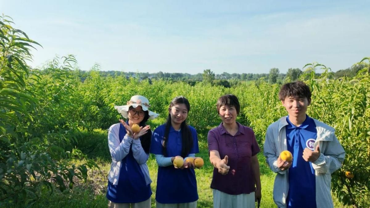 随后,实践团走进桃园,园主详细讲解桃树培育知识,从幼苗培育到日常施肥、除虫、修剪枝叶,形成了一套完整的系统。然而,种植过程并非一帆风顺,天气、虫害等因素导致部分果实损坏,直接影响产量与收益。刘霞道出的困境,恰恰触碰了“可持续农业与粮食安全”这一工程难题的核心 —— 如何在保障产量的同时,实现生态友好型种植?