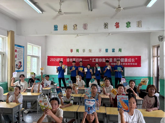 为进一步提升未成年人对非法有害出版物及信息的鉴别能力和自我保护意识,推动全社会共同抵制涉未成年人非法出版物及有害信息,营造护助未成年人健康成长的浓厚氛围,倡导绿色阅读、文明上网,7月16日,正规博彩平台体育学院支教团赴汝阳县马沟小学开展 “护苗2025·绿书签行动”进校园诵读经典活动。