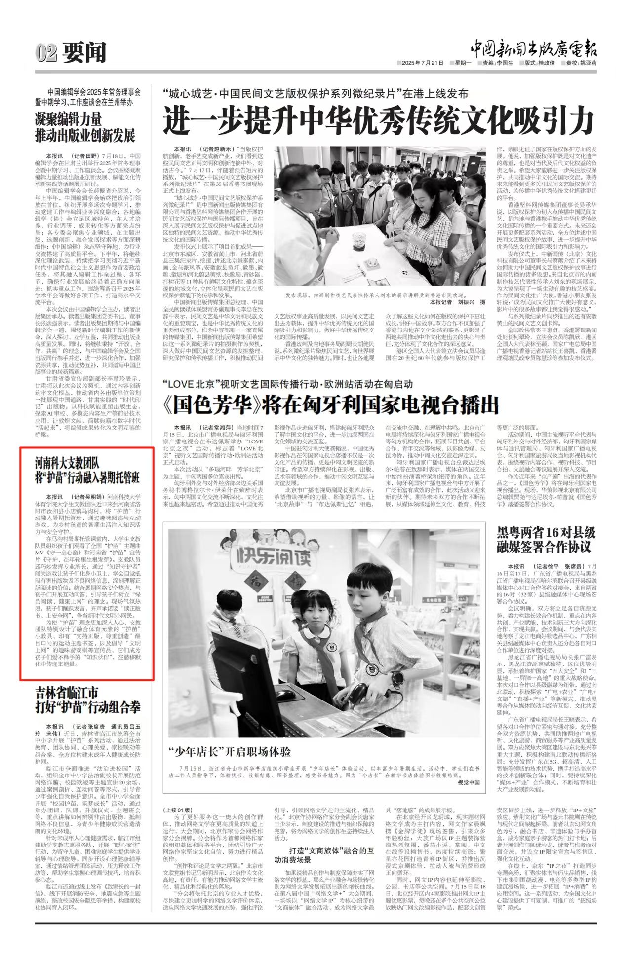在马沟村暑期托管课堂内,大学生支教队员组织孩子们观看了全国“护苗”主题曲MV《守一扇心窗》和河南省“护苗”宣传片《守护,在年轮里生根发芽》。支教队员还巧妙发挥专业所长,通过“知识守护者”闯关游戏让孩子们化身小卫士,学会自觉抵制有害出版物及不良网络信息,深刻理解正版阅读的价值;结合暑期网络安全热点,与孩子们开展互动问答,引导孩子们树立“绿色阅读、健康上网”的理念。现场气氛热烈,孩子们踊跃发言,齐声承诺要“读正版书、上安全网”,争当新时代文明小网民。
