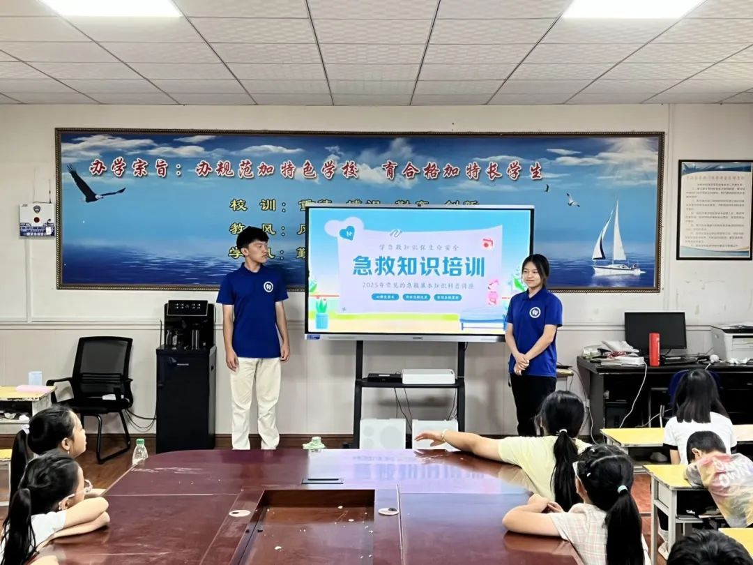 “体育浸润”团队倾力施展专业所学,将生动实用的心肺复苏术、创伤包扎法、火灾逃生技巧及应对突发状况的急救知识带进课堂。孩子们在模拟演练中凝神屏息、专注操作,这别开生面的生命教育课,不仅打破了知识传递的壁垒,更悄然在他们心中筑起了守护生命安全的防护墙。