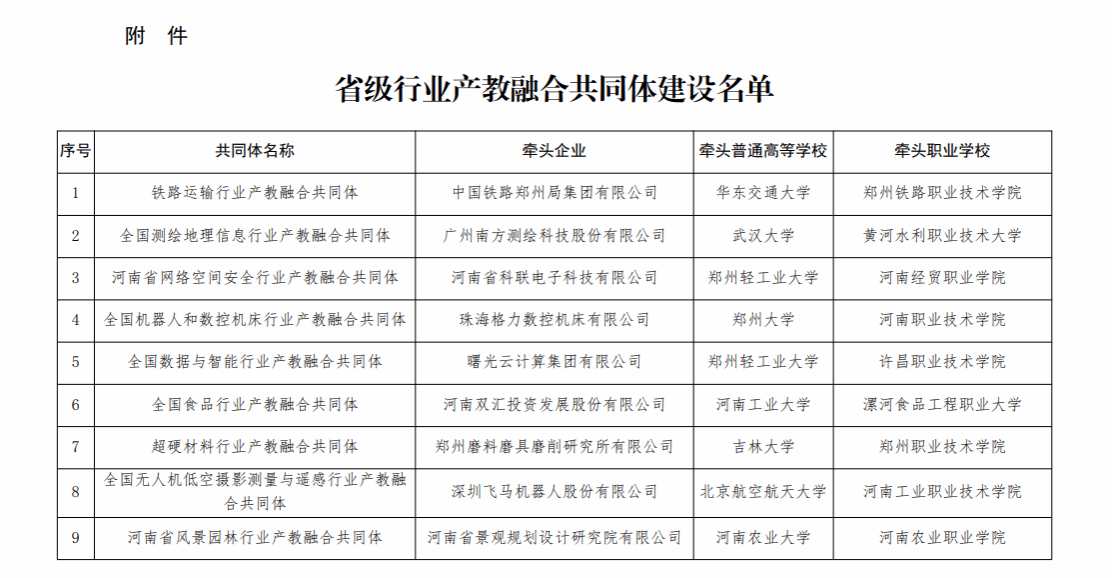 河南省教育厅关于公布省级行业产教融合共同体建设名单的通知
