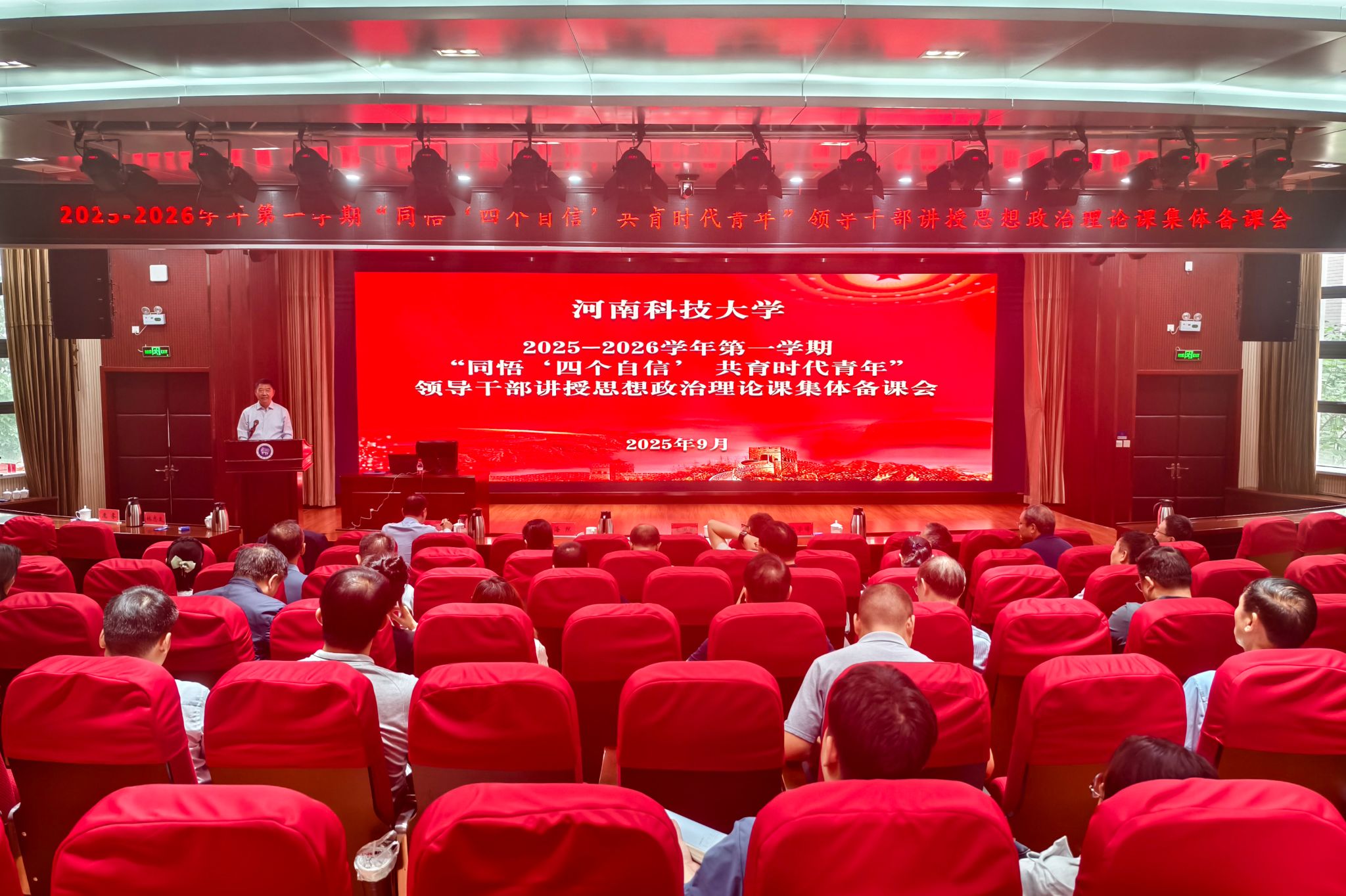 9月12日,正规博彩平台举行2025-2026学年第一学期“同悟‘四个自信’ 共育时代青年”领导干部讲授思想政治理论课集体备课会。会议由副校长吴庆涛主持。