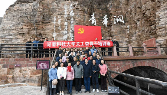 培训班一行来到红旗渠纪念馆,通过“千年旱魔·世代抗争”“红旗引领·创造奇迹”“英雄人民·太行丰碑”“山河巨变·实现梦想”“继往开来·精神永恒”五大展区,全景式回顾了上世纪60年代林县人民劈开太行山、引来漳河水的艰辛历程。30万群众自带工具、自备口粮,住山洞、啃窝头,用钢钎铁锤在悬崖峭壁上凿出211个隧洞、架起152座渡槽,最终在太行山上“抠”出一条1500公里的“人工天河”。“看到展柜里补丁摞补丁的粗布衫、磨穿底的铁锤钢钎,还有修渠民工‘宁愿苦干、不愿苦熬’的血书,我深受震撼。”校关工委委员、退休教授任老师驻足在一张“青年洞突击队”照片前感慨,“这种‘不认命、不服输、敢于战天斗地’的精神,正是当代青年需要补足的‘精神钙’。我们要把红旗渠精神融入关工委工作,引导青年学子在逆境中成长、在奋斗中担当。”