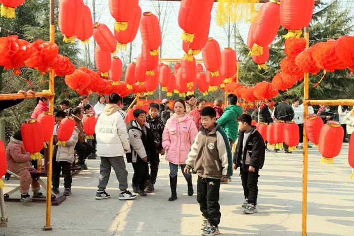 2023年2月4日,汝阳县刘店镇红里村大红灯笼高高挂,充满着浓浓节日气氛。
