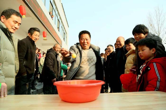 2023年2月4日,汝阳县刘店镇红里村农民踊跃参加夹乒乓球比赛。