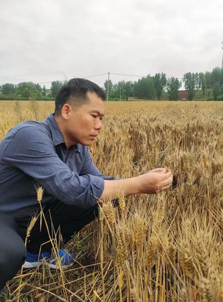 “三夏”期间,汝阳县刘店镇红里村驻村第一书记甘从辉在麦田查看小麦长势情况。