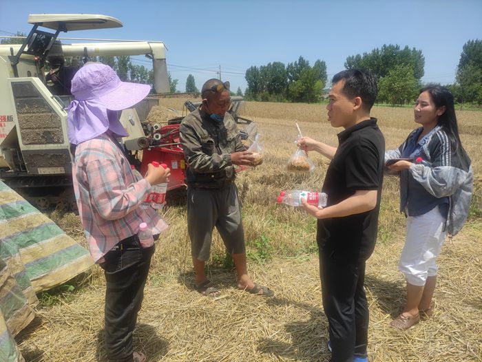 在驻村第一书记甘从辉探索的“1234”工作法下,刘店镇红里村所辖5个自然村,在短短的三天雨停期高质量完成1700余亩小麦的收割和晾晒任务,打赢了雨口抢麦这场保卫战,守住了村民的“粮袋子”。(汝阳县融媒体中心 康红军 摄)