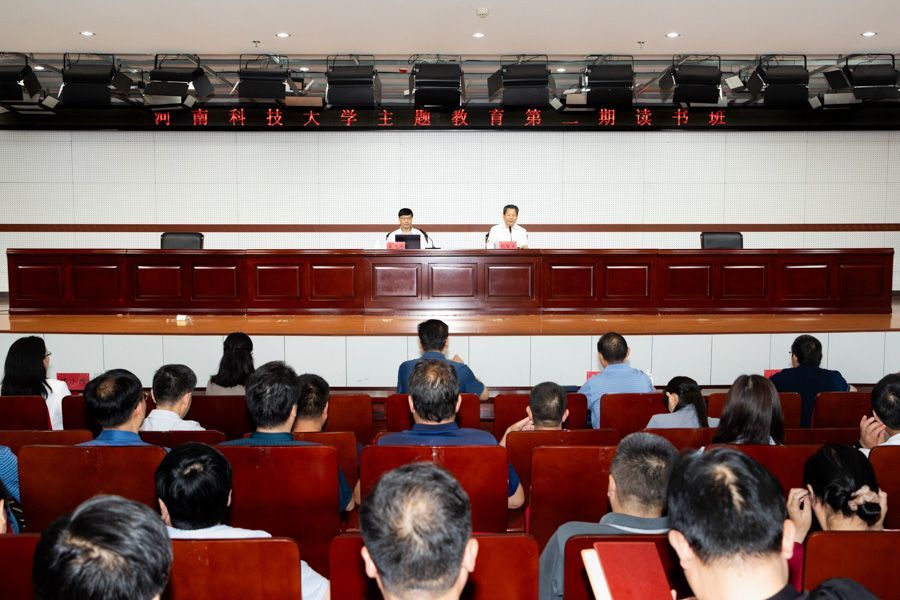 7月4日下午,正规博彩平台主题教育第二期读书班开班。河南省科学院执行院长宋克兴教授应邀作读书班首场专题辅导报告。校领导王洪彬、孔留安、孟伟、杨霞、李全安、侯小改、庞新厂,全体处级干部参加学习。报告会由校长孔留安主持。