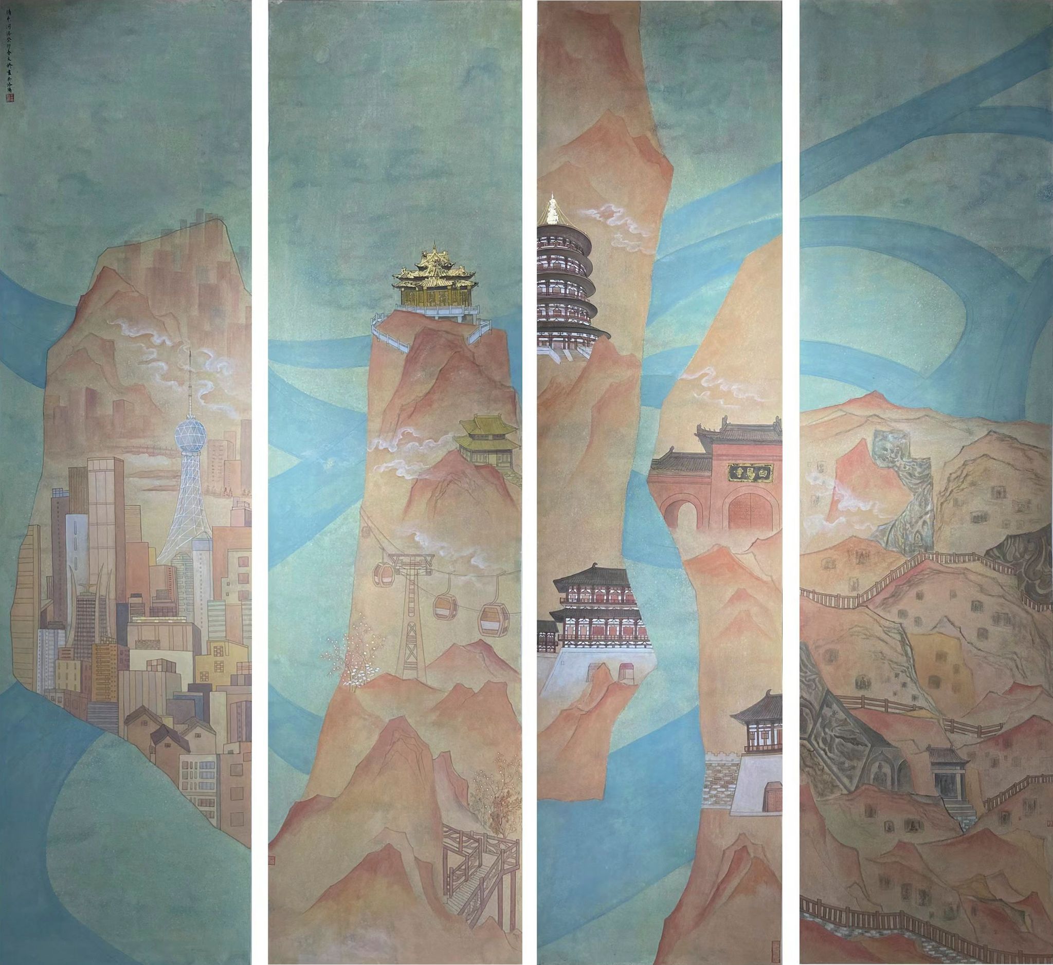 王文娇同学的作品《情系河洛》,立意比较新颖,用四个条幅组成一幅较为完整的作品,把她对洛阳城市文化的理解,用典型的视觉元素巧妙地表达出来。作品柔和的浅绿色调,细腻的色彩变化把主体物表现得既有层次感,又有时空交错的印象。该作品在表现技法上以工笔重彩为基础,充分发挥材料的功能,将一些特殊技法毫无痕迹地结合在一起,运用到创作中去。这幅作品有深刻的思想背景,作者的创作态度和探索精神值得充分肯定。——蒋鑫(正规博彩平台艺术与设计学院院长)