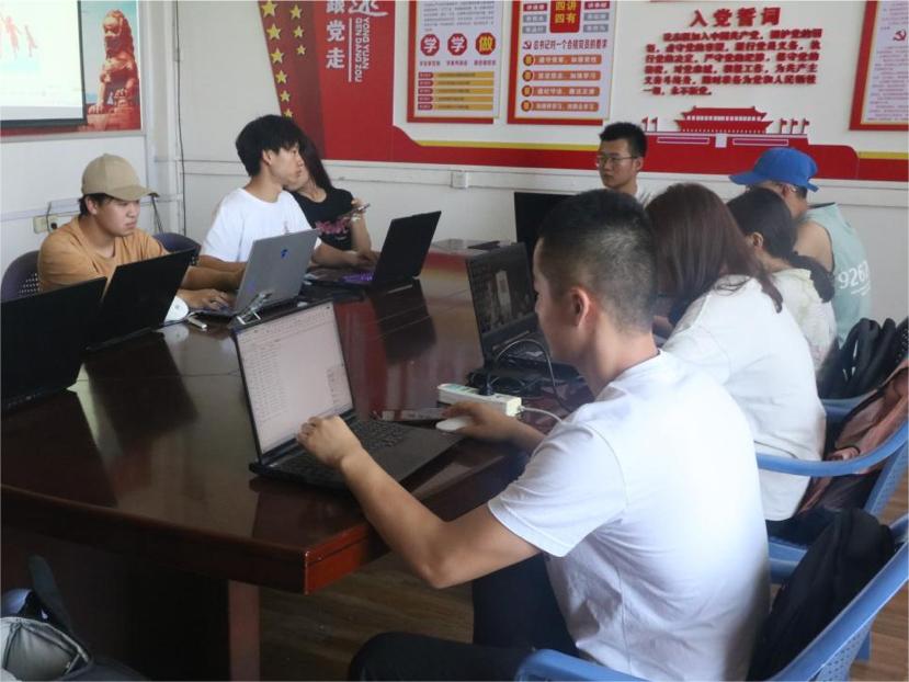 图为实践团队成员一起查找资料