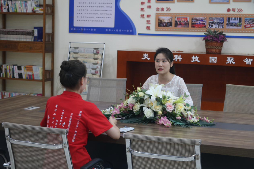 实践的最后探索团成员邀请了洛龙区团委副书记和炎黄科技园经理参加访谈。针对企业支持人才创新创业方面,成员们了解到炎黄科技园首先打造良好的环境及便利的住宿条件,结合洛阳当地基建的发展为创新创业人才提供相对稳定的日常起居环境以减少生活方面的负担,其次他们会对创业就业人员提供专业的导师进行公司规划、政策申报等的指导,创业公司经济技术方面的支持以及创业过程中的心理疏导。同时李丹老师就如何宣传建设洛阳市青年友好型城市形象与洛龙区团委副书记进行了讨论,并结合互联网和书记交换了网上宣传上的一些经验和建议。成员们也分享了一些大学生毕业求职可能会遇到的一些困难,在园区中与工作人员进行了探讨,努力为建设青年友好型城市贡献力量。