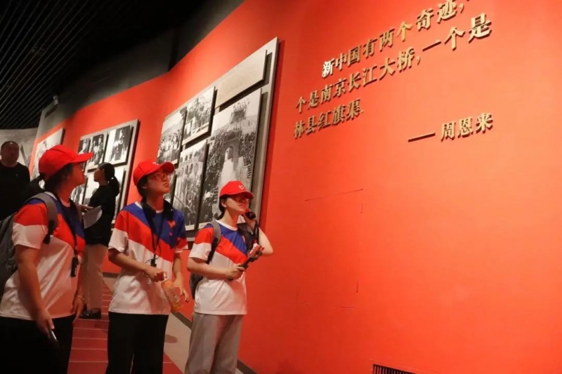 队员们走进红旗渠纪念馆,依次走过“序厅”“旱魔”“奇迹”“丰碑”“梦想”“精神”,切身感受到“自力更生,艰苦创业、团结协作、无私奉献”的重要意义;站在分水闸前,分明感受到穿越时空而来的兴奋与喜悦,看到了近十万群众接续奋斗十年的光辉伟绩,一闸分水,万民受用;走到青年洞中,体会到青年突击队不畏艰险、奋勇向前的勇气与魄力,听党指挥、舍命奉献,在红旗渠的每一处崖壁上都留下了青年的身影。