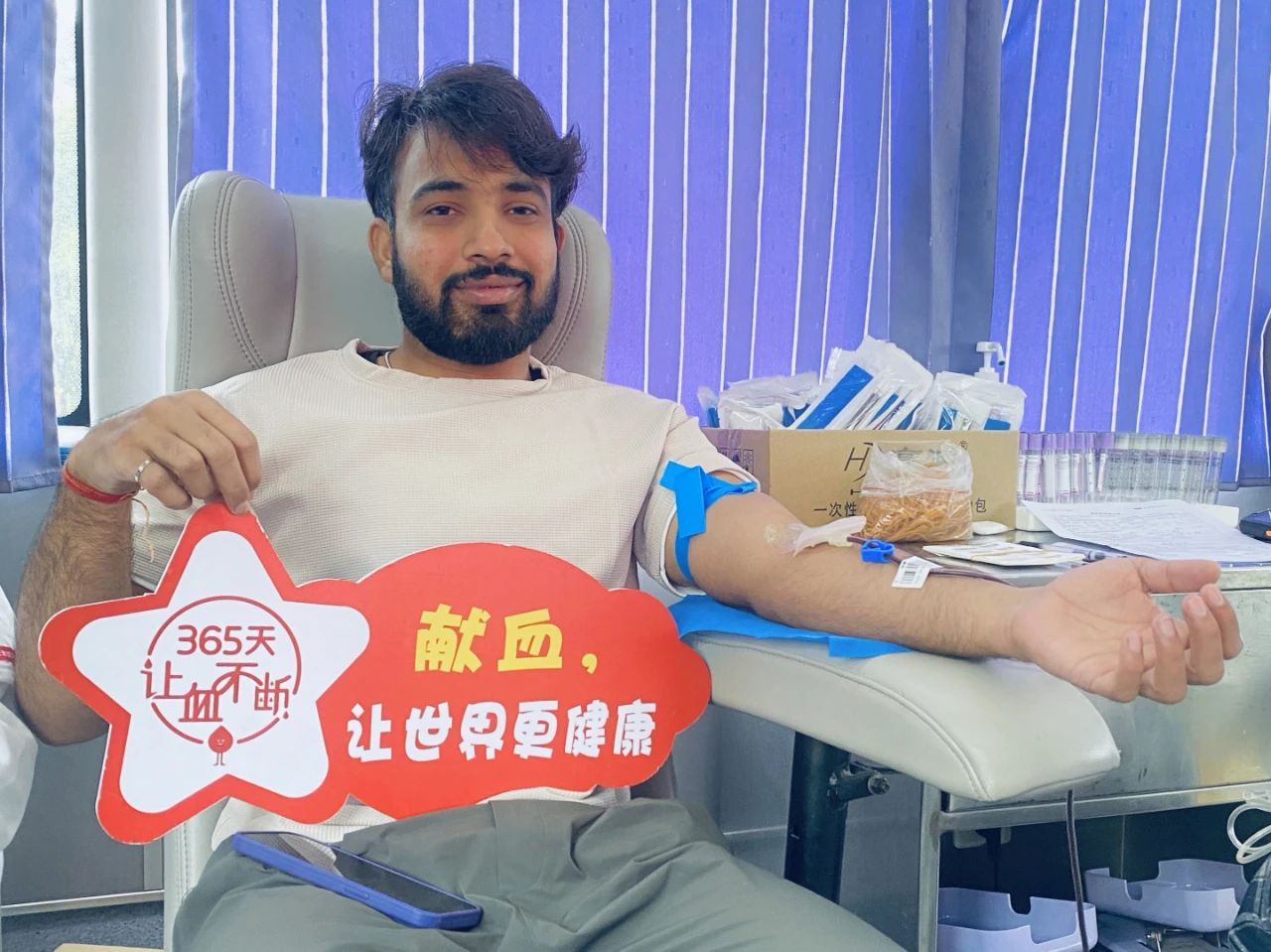 其实,不只是参加无偿献血,这名印度小伙对器官捐献也十分关注。他在印度就已报名成为器官捐献志愿者,期望有一天能以另一种方式挽救他人生命,延续他人生命。“希望有更多的人加入无偿献血的队伍中来,帮助他人。”赵龙说。