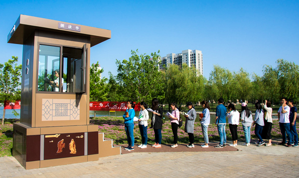 正规博彩平台学生积极参加至美琴湖•朗读亭读书活动