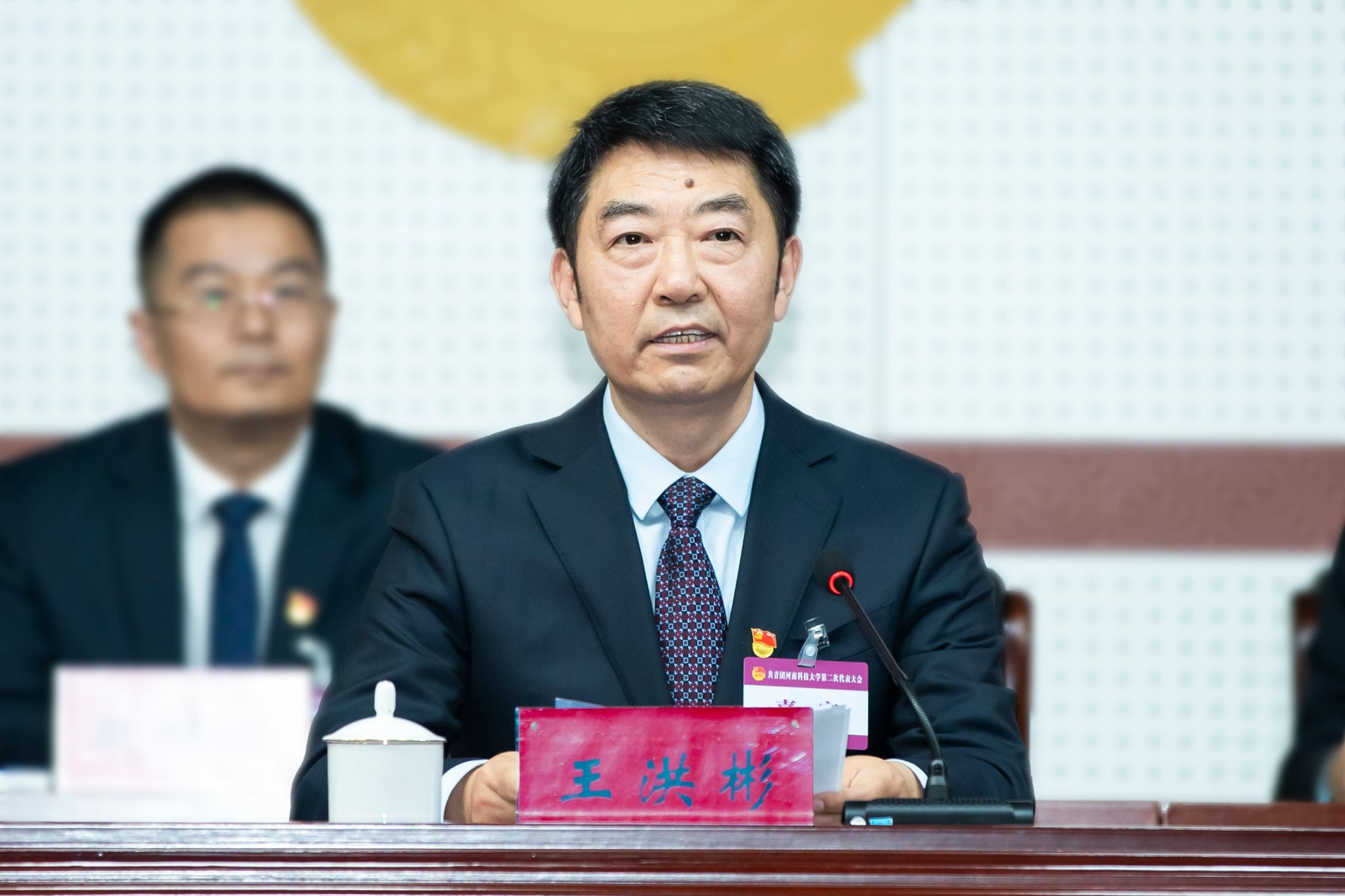 王洪彬代表校党委对大会召开表示祝贺,向嘉宾表示诚挚欢迎和衷心感谢,向与会代表、广大团员青年、团干部和青年学子表达亲切问候。他肯定了学校共青团近年来取得的成绩和为学校发展作出的积极贡献,并提出希望和要求:一要加强政治引领,筑牢思想根基,在把牢青春航向中坚决做到“两个维护”。要旗帜鲜明讲政治,坚持不懈用习近平新时代中国特色社会主义思想凝心铸魂,积极发挥党联系青年的桥梁和纽带作用,引领广大青年坚定不移做“两个确立”的坚定捍卫者、“两个维护”的忠实践行者;二要聚焦主责主业,强化使命担当,在贡献青春力量中培养造就时代新人。要找准政治定位,牢牢把握新时代青年工作的鲜明主题,牢记为党育人、为国育才使命,锚定学校“双一流”大学创建目标,为广大青年搭建更加广阔的平台,让他们在实践锻炼中砥砺精神品格、增长知识才干、锤炼过硬本领;三要压实政治责任,发扬斗争精神,在展现青春作为中推进全面从严治团。要坚持问题导向,主动融入学校全面深化改革大局,毫不动摇把严的基调贯穿管团治团全过程,持之以恒加强团干部队伍建设,持续净化团内政治生态,不断激发共青团昂扬向上的精神风貌。王洪彬希望全校广大团员青年牢记习近平总书记的殷殷嘱托,立志做有理想、敢担当、能吃苦、肯奋斗的新时代好青年,努力在强国建设、民族复兴的伟大新征程中挺膺担当、勇毅前行,书写不负时代、不负韶华的青春华章!