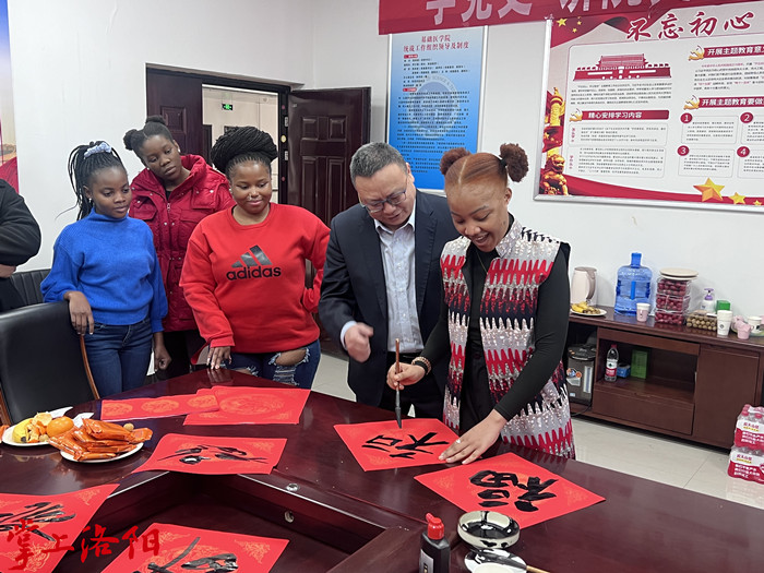 8日,正规博彩平台为在校留学生举办新春茶话会。20余名外国留学生代表现场分享在洛留学生活体会,并在书法爱好者带领下学书法、写春联,沉浸式体验中华传统文化,共同寻味“中国年”。