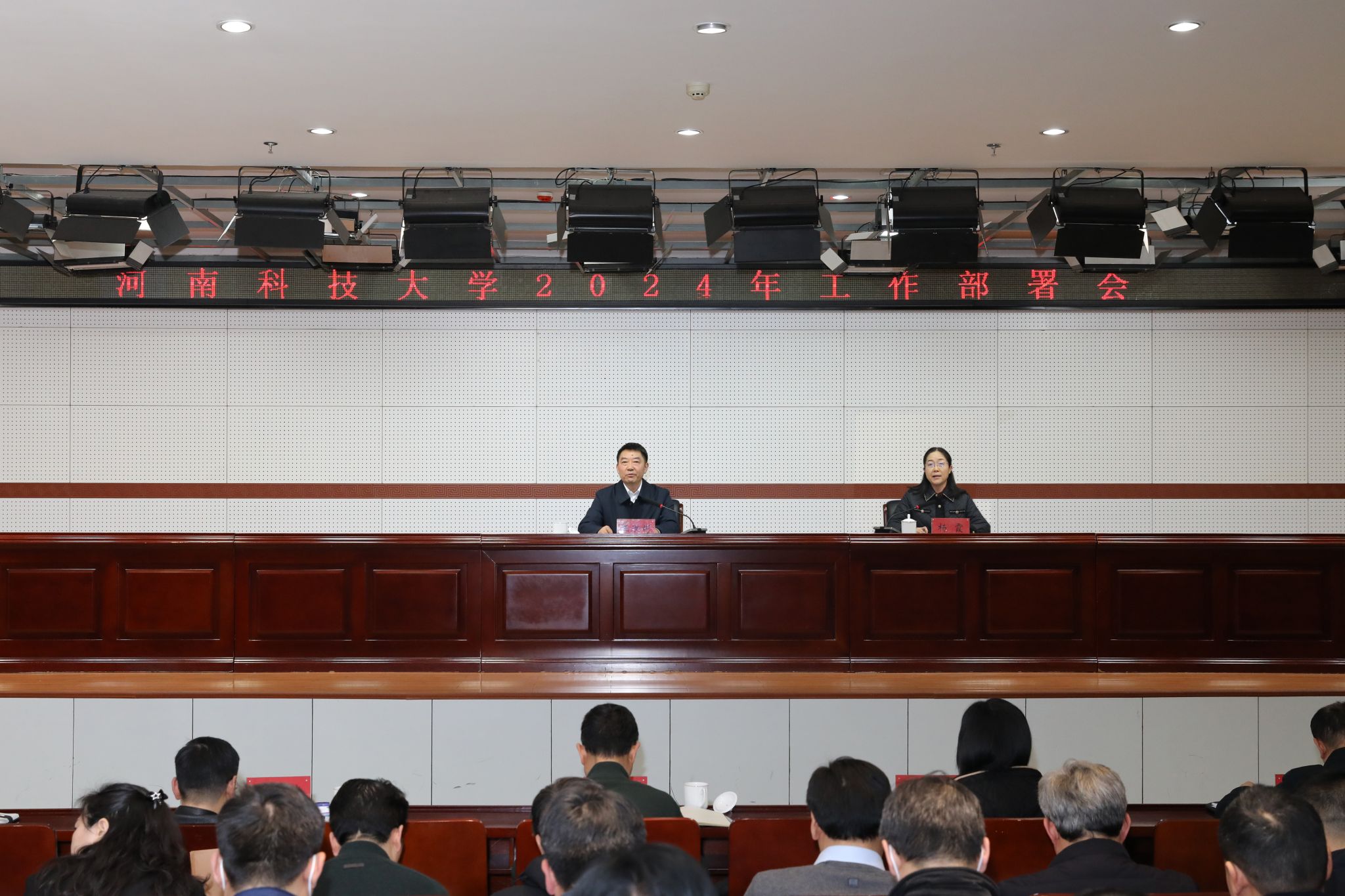 结合学校2024年工作,党委书记、校长王洪彬指出,2024年度工作要点概括为“18946”,即,“1”为“双一流”大学创建这条主线、8项重中之重工作、9个方面重点、46项具体任务。他强调,全校上下要紧紧围绕“双一流”大学创建这一中心任务,抢抓机遇、担当使命,紧盯一流学科创建关键指标,突出学科特色发展这个核心,抓住高端人才引育这个重点,扭住标志性高水平成果产出这个关键,以只能成功、不能失败的决心和勇气,切实抓好“双一流”大学创建各项工作。要突出把握8项重中之重的工作,这是全年工作能否抓好、抓出成效的关键要害。要深入学习贯彻党的二十大精神,巩固拓展主题教育成果,不断把习近平新时代中国特色社会主义思想学习宣传贯彻引向深入;筹备召开中国共产党正规博彩平台第三次代表大会,完成学校党委换届工作;强力推进“一流学科”创建和优势学科锻造工程,做好博士学位授权学科与专业学位授权类别申报工作;扎实做好本科教育教学审核评估整改工作,做好学术型人才培养转型,推进学术型人才培养和应用型人才培养分类发展,不断提高人才自主培养质量;坚持“四个面向”,积极融入国家战略科技力量、建设好全国重点实验室和河南省实验室,持续提升科技创新能力,努力突破关键核心技术“卡脖子”问题;深入实施“龙门人才工程”,构建“引、育、用、服”全过程协同体系,激发人才创新创造活力,实现高层次人才引育新突破;完善办学条件、不断提升学校服务质量;统筹发展和安全,有效化解各种安全隐患,切实维护校园和谐与安全稳定。