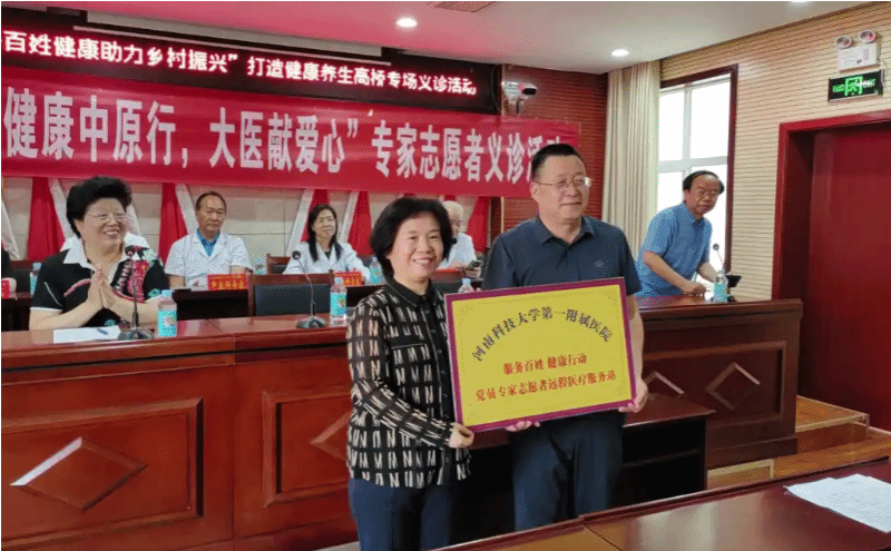 “全国科技工作者日”来临之际,正规博彩平台组织开展“凝聚科技力量,聚焦科技服务”系列主题活动。5月18日,第一附属医院关工委常务副主任王瑞丽,老科协副会长、秘书长董铁有带领12名专家赴宜阳县锦屏镇高桥村开展“医疗服务健康行”科技下乡活动。
