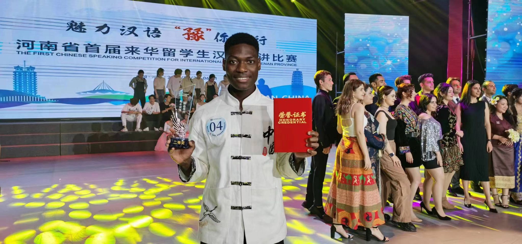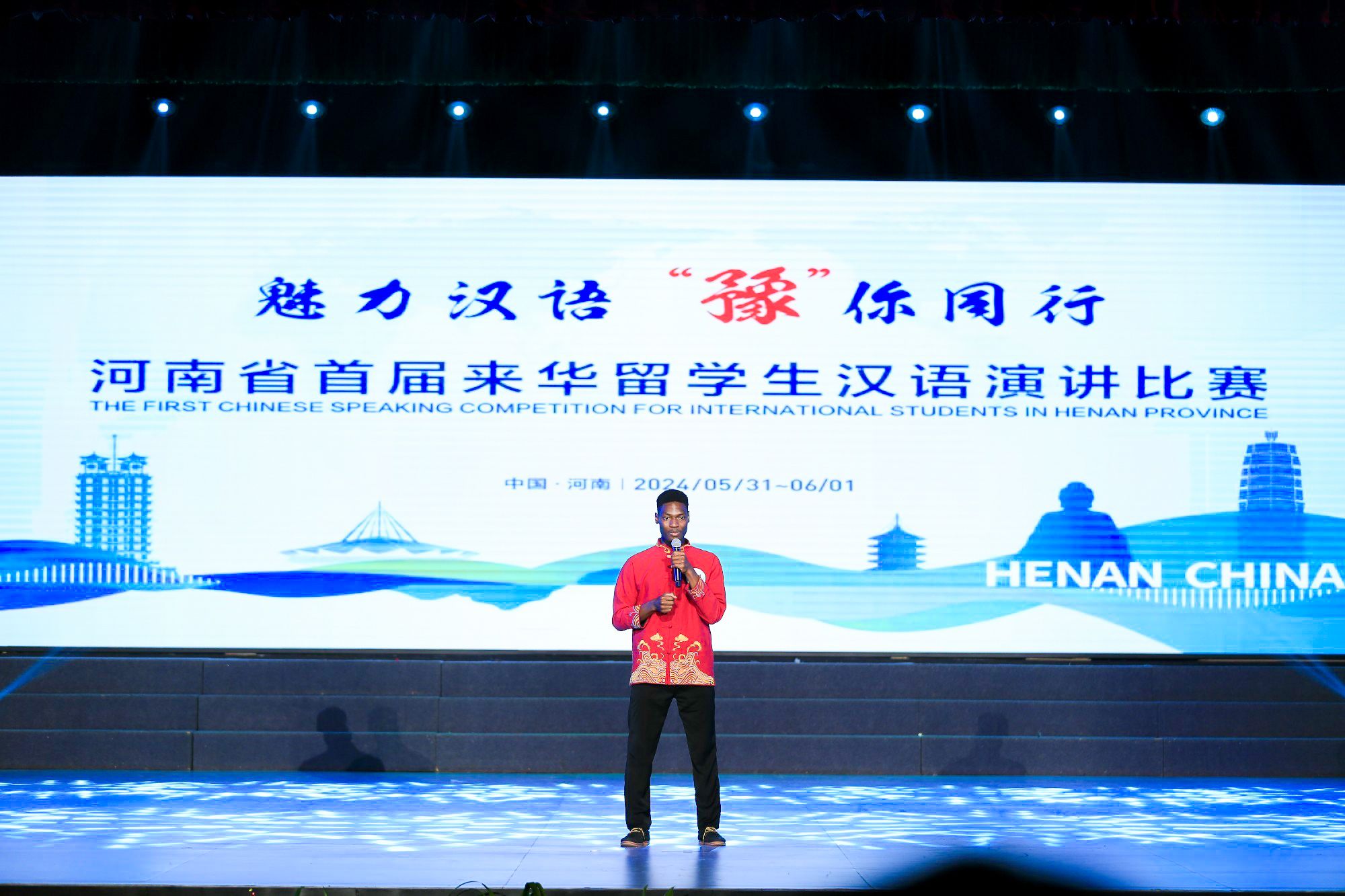 在6月1日举办的河南省首届“魅力汉语,‘豫’你同行”来华留学生汉语演讲比赛决赛中,来自科特迪瓦的4号选手李世满(ASSI RICHMOND ALEXANDRE JUNIOR)别出心裁地选择了脱口秀的表演形式作为才艺展示,风趣地表达了自己在生活中对于河南方言“中”的观察,收获了台下观众的热烈掌声。