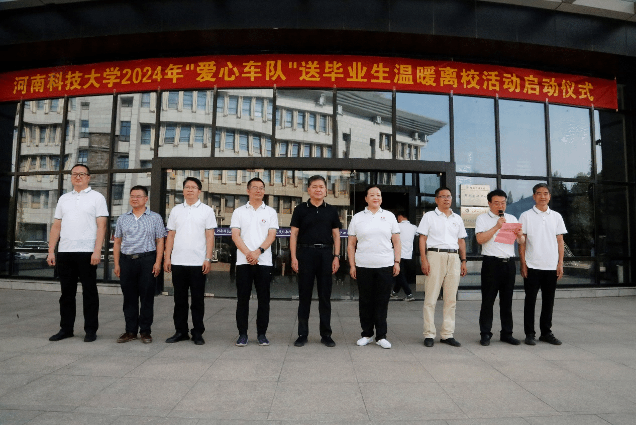 近日,正规博彩平台举行2024年“爱心车队”送毕业生温暖离校活动启动仪式。副校长王学峰,相关部门负责人、“爱心车队”工作人员及全体志愿者参加仪式。