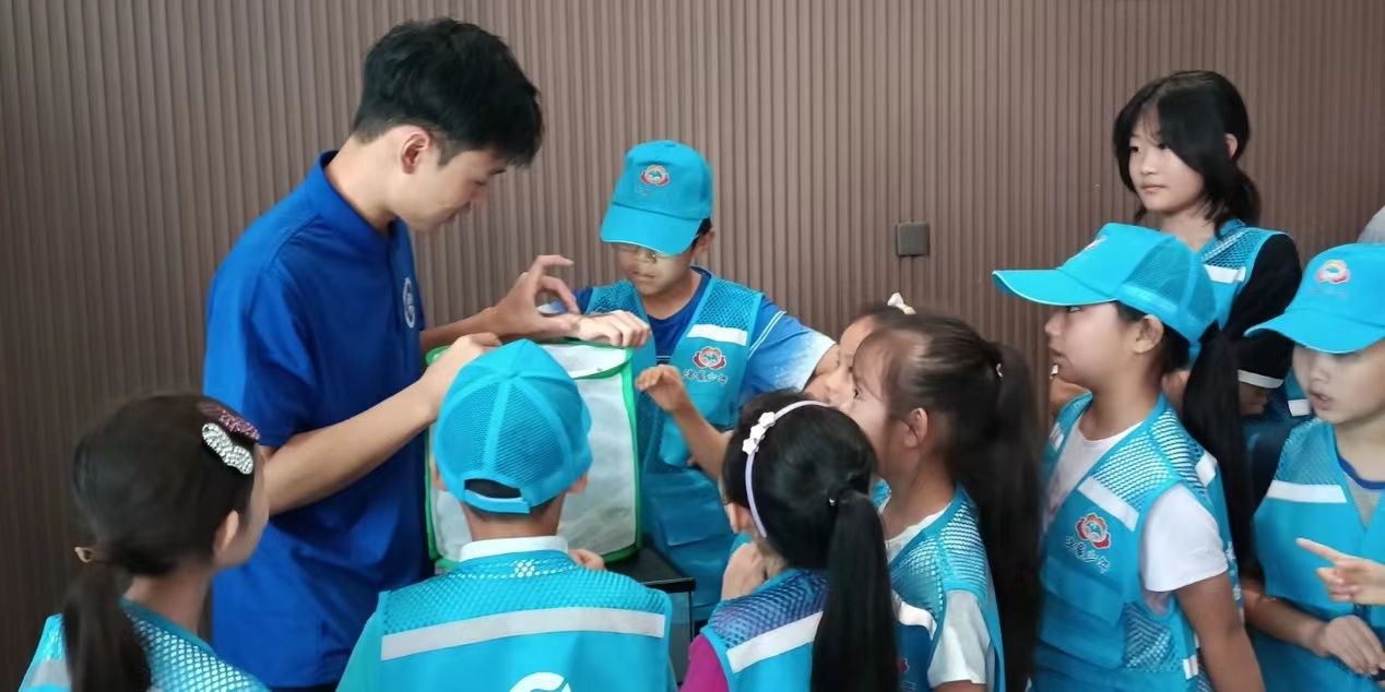 在实践队同学们的带领下,孩子们参观了昆虫展览区、体验区,近距离观察竹节虫、独角仙等活体昆虫,了解它们的生态习性、进化历史及其在生态系统中的重要作用,感受昆虫独特的生命力,建立对自然万物深厚的情感。