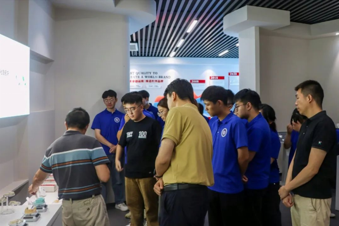 团队成员首先参观了当地企业的展厅,企业人员在此介绍了公司的产品系列、技术创新以及市场应用。公司的业务范围广泛、涵盖石膏系列产品及磨头系列产品等等。其产品在业内闻名,近年来依靠自主创新技术推出的牙科合金牙烤瓷粉、二硅酸锂玻璃陶瓷瓷块、牙科热压铸陶瓷包埋料等新型产品,致力于填补国内空白。随后,团队成员在企业引导下参观了相关研发场所,深入了解了企业先进的研发设备、丰富的科研成果和新产品开发过程。