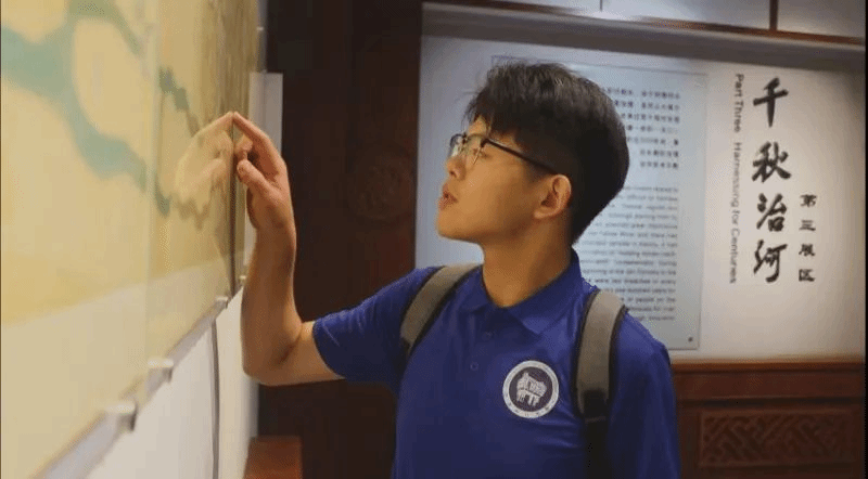 工作室成员探访黄河博物馆。馆中黄河水患、治河春秋、漕运灌溉等主题展,诉说着黄河奔腾万年的风云变幻。2019年9月17日,习近平总书记曾在这里久久凝视黄河改道图。看着这张图上纵横25万平方公里的决溢范围时,工作室成员吴一迪感慨地说:“我们何其有幸,成长在今日之中华,党和国家为我们创造了安全的、幸福的成长环境,而我们不能因为当下之安,就忘记过往之危,更应常记国家发展之所需,担当青年奋斗之重责。”