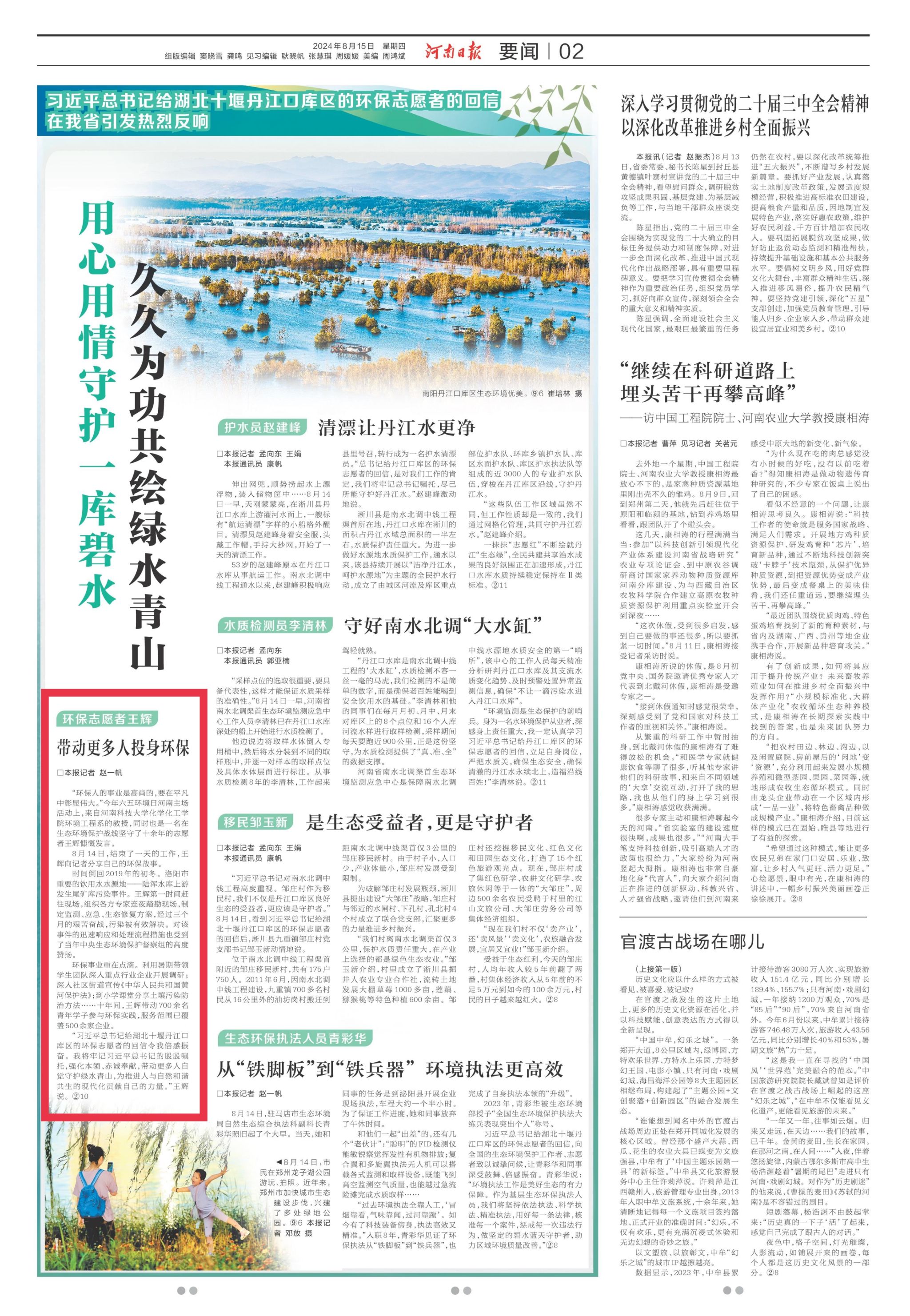 上一条:大象新闻:人人尽责 久久为功 为推进人与自然和谐共生的现代化贡献力量 ——习近平总书记给湖北十堰丹江口库区的环保志愿者的回信在河南引发热烈反响