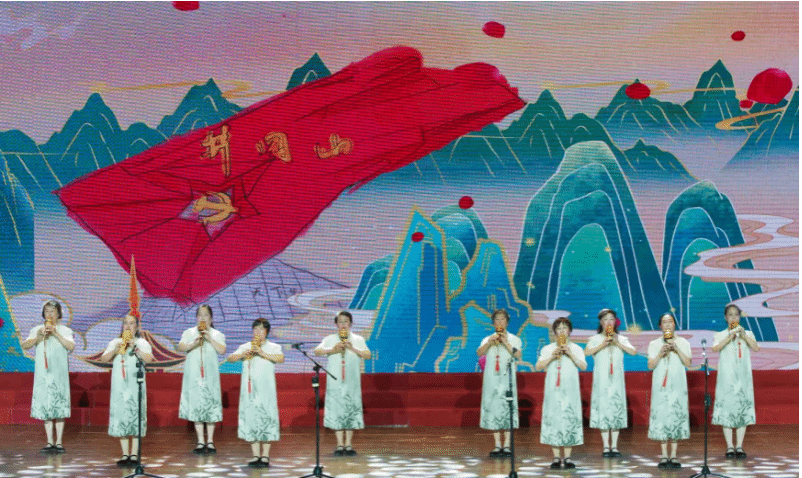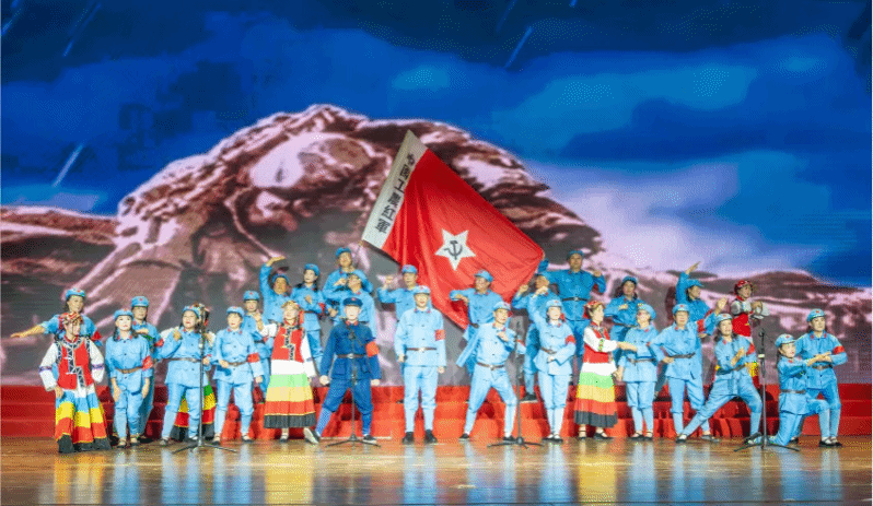 一首长征组歌《四渡赤水出奇兵》合唱,用磅礴的气势、铿锵有力的歌声,让全场观众身临战争其境,再次体会到万里长征的艰苦卓绝,深刻感受我党我军领导人伟大的军事才能和用兵如神的指挥艺术。