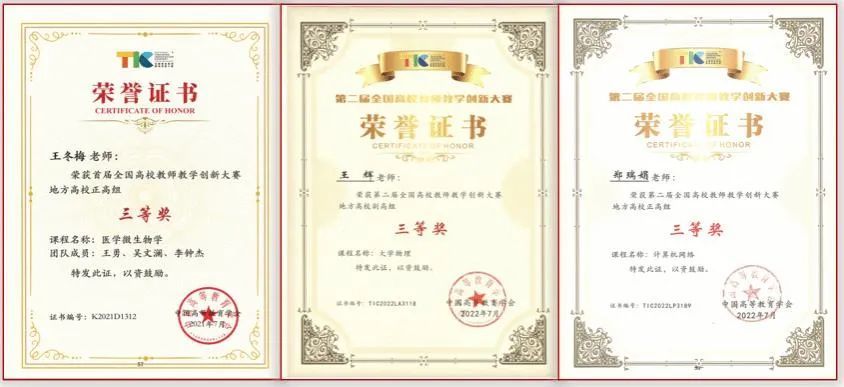 持续关注教师教学能力提升,充分发挥教学竞赛在提高教师队伍素质中的示范引领作用,促进现代信息技术与教育教学深度融合,不断完善教学名师评选体系和培育工作;组织关于混合式教学、专业认证、劳动教育、课程思政、智慧教学、新形态教材、教学成果培育等相关教学能力培训,教师教学能力显著提升。近5年,学校新增5名中原教育教学领军人才、13名省级教学名师;5人获国家级课堂教学创新大赛奖,39人获省级课堂教学创新大赛奖,8人获思想政治理论课教学技能“大比武”奖。