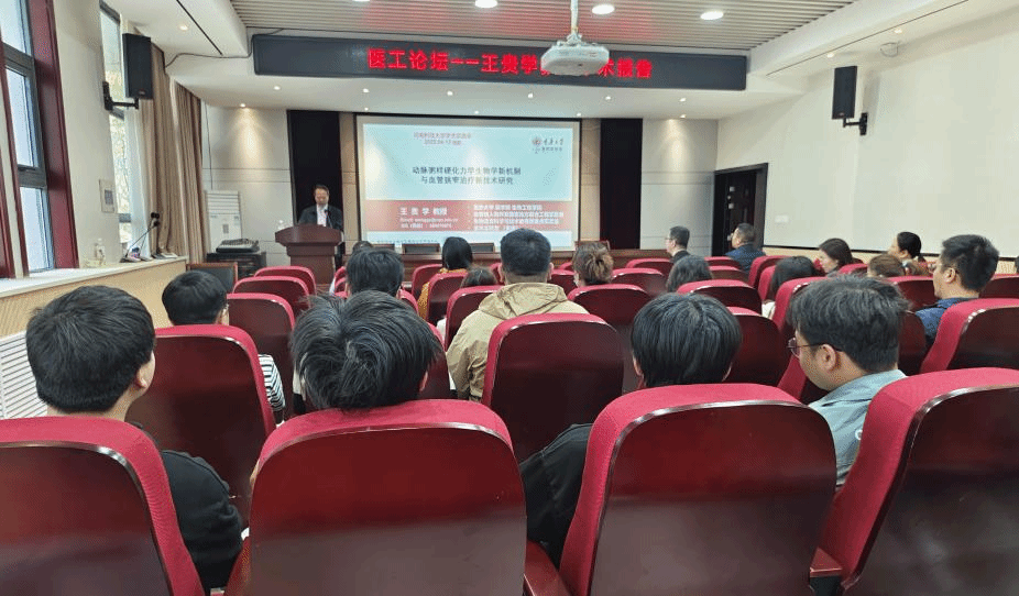 校新闻中心讯 4月14日,医学部、医学技术与工程学院主办的“医工论坛”在医科3号楼104报告厅举行。重庆大学王贵学教授为师生作题为《动脉粥样硬化力学生物学新机制与血管狭窄治疗新技术研究》的学术报告。