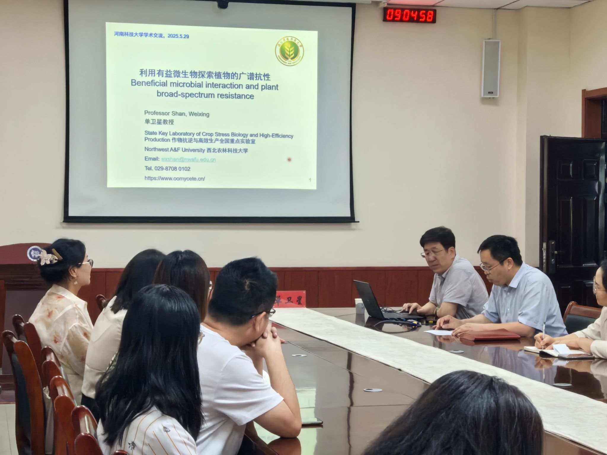 校新闻中心讯 5月29日,西北农林科技大学单卫星教授应邀到我校开展学术交流,在农科1号楼215会议室为师生作了题为《利用有益微生物探索植物的广谱抗性》的学术报告。