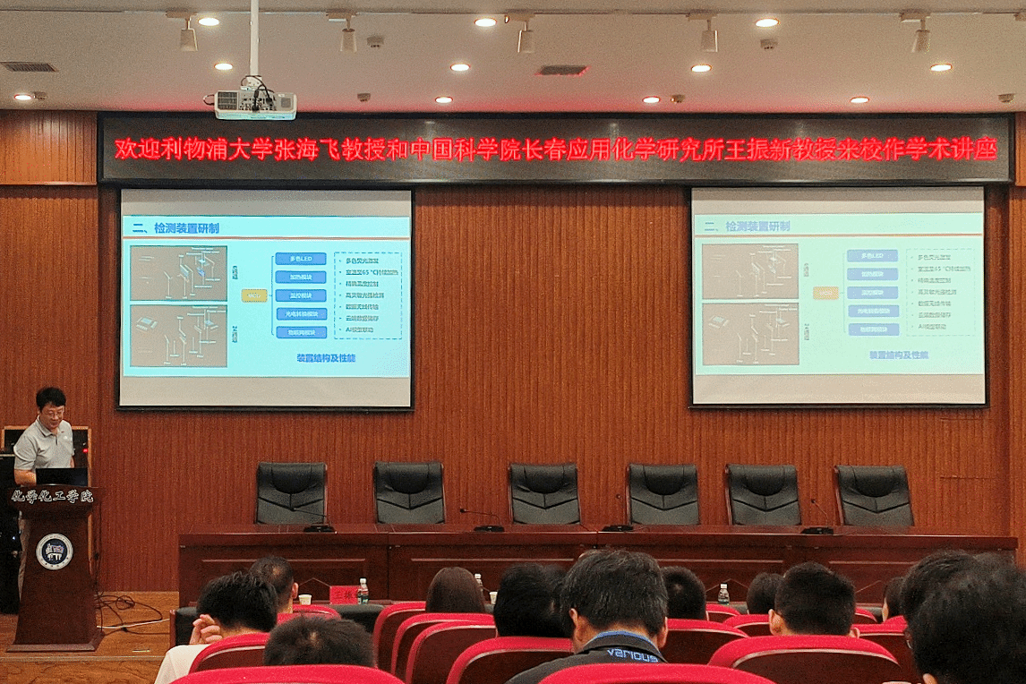 校新闻中心讯 9月10日,中国科学院长春应用化学研究所王振新教授应邀在我校开元校区工科5号楼112报告厅为我校师生作题为《研制用于即时检测的多通道小型荧光仪》的学术报告。