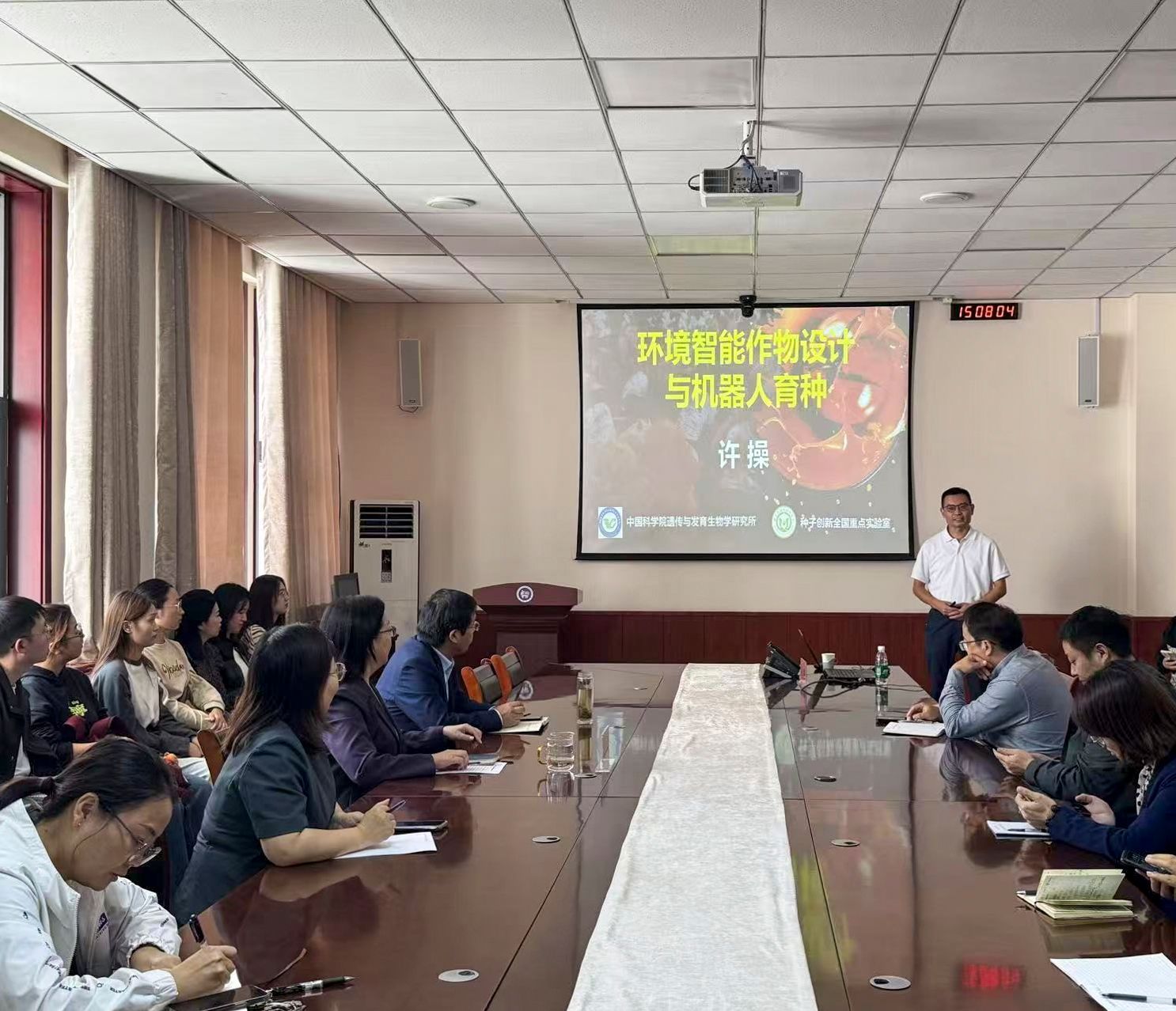 许操围绕当前育种前沿技术,介绍了“增源扩库畅流”育种新思路,详细汇报了“增源扩库畅流,培育顺境高产逆境稳产作物新品种”“柱头外露型雄性不育系创制,研发智能育种机器人,实现智能作物智能培育”“野生植物快速从头驯化产生新型作物,将本草装进番茄”等内容。此外,许操还提出未来育种将走向“BT筑基+AI赋能+Robot劳作”的新模式,有助于推动育种实现智能化、高效化发展。报告结束后,现场参会人员就报告内容结合个人研究方向开展了广泛的讨论与交流。