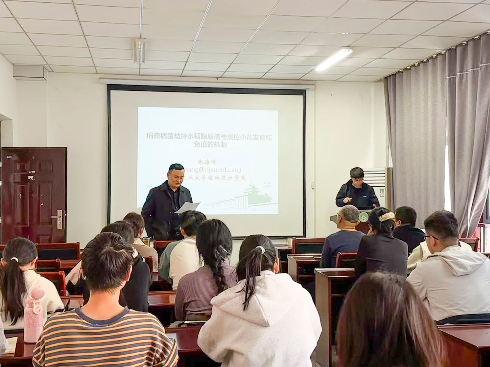 校新闻中心讯 11月15日,南京农业大学张海峰教授应邀在开元校区为我校师生作题为《稻曲病菌劫持水稻脂质信号操控小花发育和免疫的机制》的学术报告。