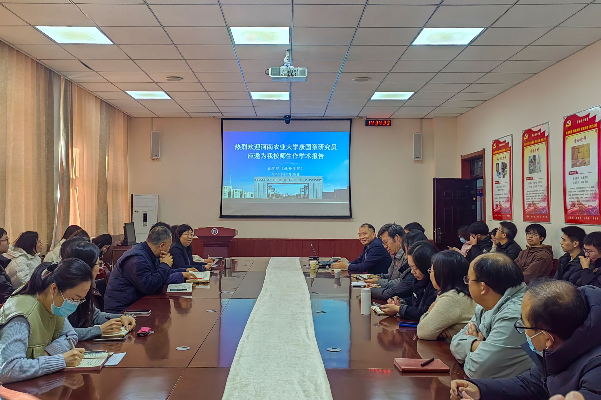 12月25日,国家小麦技术创新中心副主任康国章研究员、西北农林科技大学李学军教授应邀为我校师生分别作题为《小麦高产抗逆分子调控》和《西农小麦育种研究进展》的学术报告。
