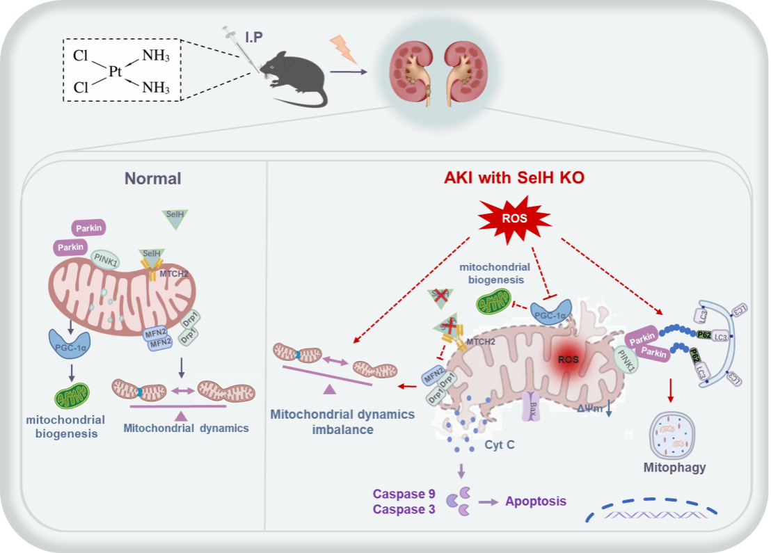 研究团队通过构建SelH基因敲除小鼠模型,首次揭示SelH可作为急性肾损伤早期干预的关键分子标志物。结合免疫共沉淀和蛋白质谱串联技术,系统阐释了其分子作用机制:SelH作为硒代谢的关键效应分子,通过靶向线粒体载体同源蛋白2,调控线粒体融合蛋白2依赖的线粒体质量控制系统,从而在急性肾损伤中发挥保护作用。该研究不仅深化了硒元素在肾脏保护中的生物学功能认知,为临床药物性肾损伤的防治提供了新的潜在靶点,同时也为畜禽养殖中肾毒性疾病的主动防控策略奠定了理论依据。
