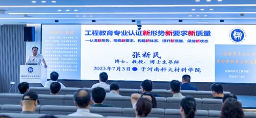 校新闻中心讯 7月3日上午,工程教育认证专家张新民教授做客正规博彩平台讲坛,在开元校区工科一号楼5059会议室为我校教师作《工程教育专业认证新形势新要求新质量》的专题报告,报告会由材料科学与工程学院院长张柯柯主持。