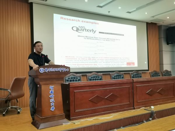 校新闻中心讯 8月15日上午,法国里昂大学龚业明教授在文1-S105应邀为我校师生作题为《人工智能与管理科学——新理论,新方法,新实践》的学术报告。我校相关专业教师和研究生聆听报告。报告会由商学院副院长张纪主持。