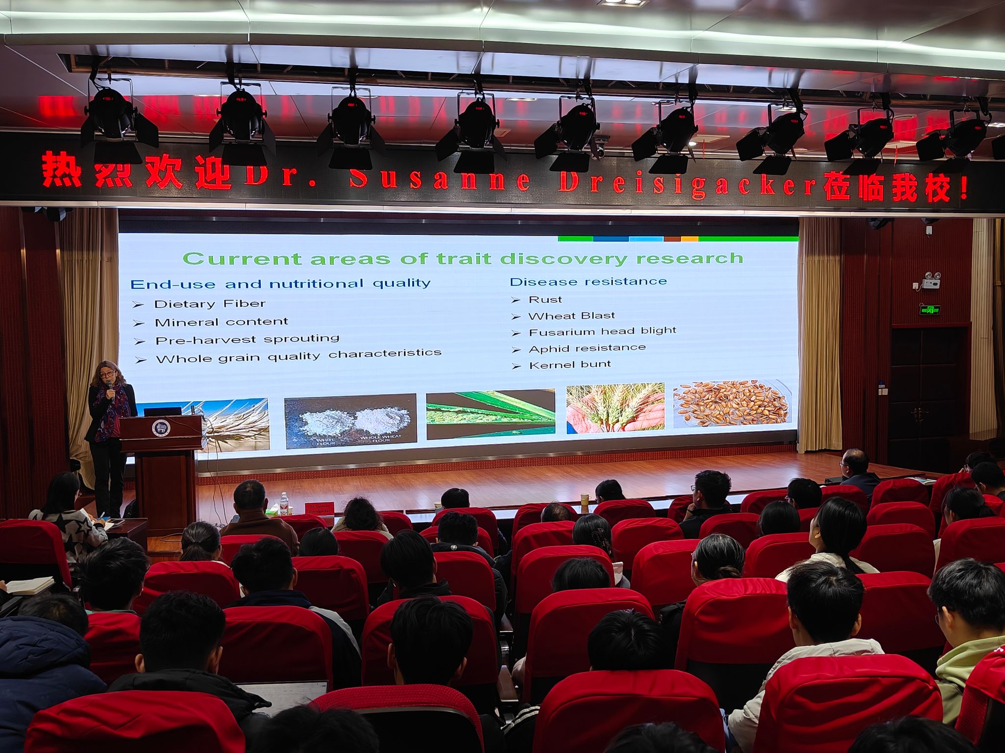 校新闻中心讯 2023年11月24日,国际玉米小麦改良中心(CIMMYT) Susanne Dreisigacker博士应邀为农学院(牡丹学院)师生作题为《Applying Cutting-Edge Technologies to Better Understand and Accelerate Wheat Improvement》的学术报告。报告大会由农学院(牡丹学院)副院长石兆勇教授主持。