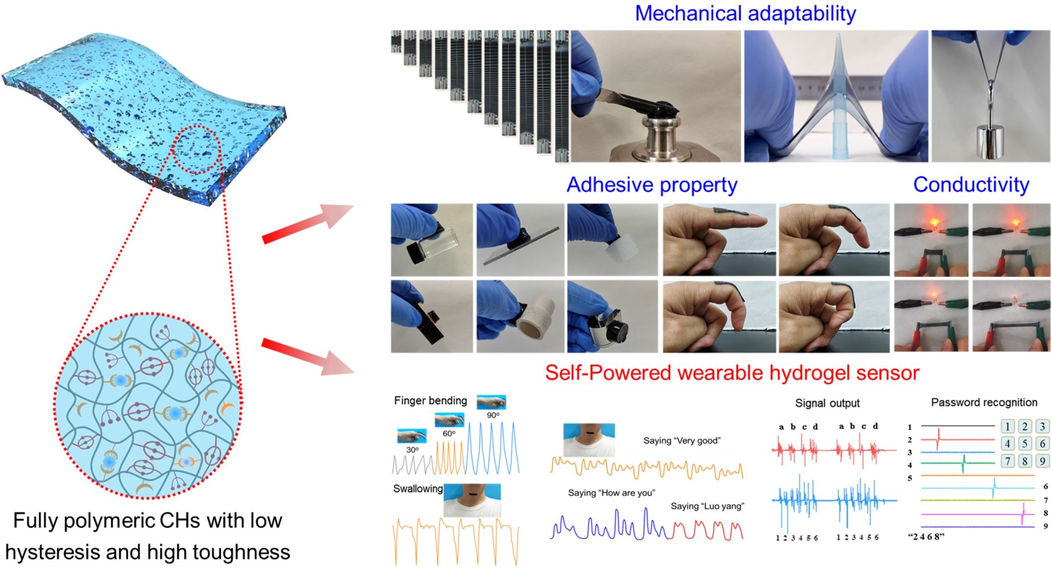 图文:基于低滞、高韧全聚合物导电水凝胶的自供电柔性可穿戴传感器